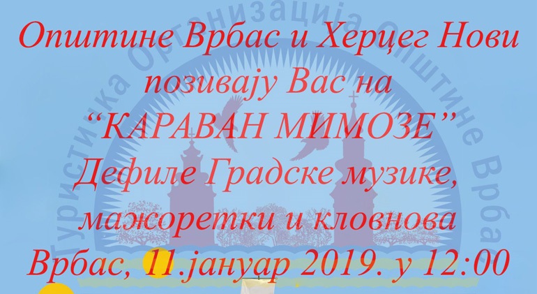 Центром Врбаса у петак у подне проћи ће "Караван Мимозе" - дефиле градске музике, мажоретки и кловнова. Промоцију 50. празника Мимозе у Врбасу организују општине Врбас и Херцег Нови.