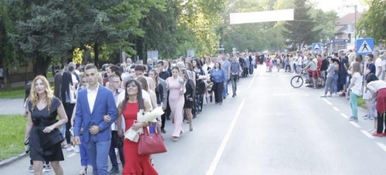Након гимназијалаца, матурско вече имали и ученици завршних разреда Средње стручне школе "4. јули". И они су пре заједничке феште прошетали главном градском улицом.