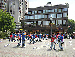 Око 70 матураната основних и средњих школа у Врбасу учествовало је данас у традиционалном Плесу са Европом. Тачно у подне у центру града, уз Штраусову оперету „Слепи